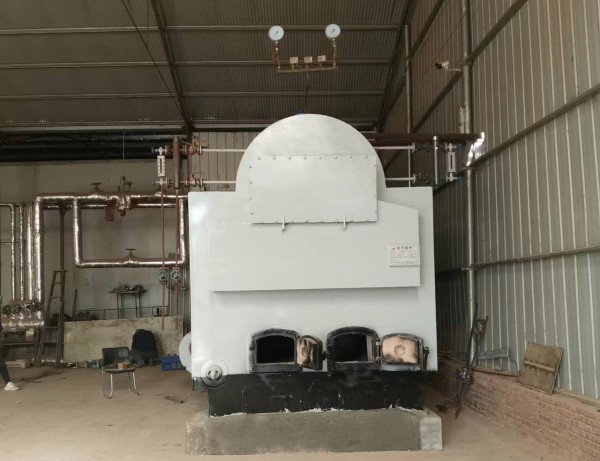 DZH快装活动炉排生物质锅炉是一种卧式三回程水火管式锅炉。锅炉的燃料是农林废物作为原材料,经过粉碎、混合、挤压、烘干等工艺,制成各种成型(如块状、颗粒状等)的,可直接燃烧的一种新型清洁燃料生物质燃料。燃料由输料机送入炉顶料仓,然后由螺旋给料机送入炉膛,均匀散落在炉排上,在此处由于高温烟气和一次风的作用逐步预热,干燥、着火、燃烧,此过程中析出大量挥发分,燃烧剧烈。